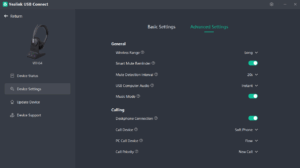 Åbn Telavox Flow UC og ret indstillingerne som vist i de to billeder herunder: